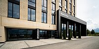 Der Neubau – in prominenter Lage und weithin sichtbar errichtet – besticht durch zwei kontrastierende Gebäudeteile. Während der Hauptbaukörper in zarten Naturtönen gehalten ist, hebt sich der Anbau mit seiner schwarzen Fassade deutlich davon ab. Der Kontrast wird zusätzlich durch die unterschiedlichen Höhen der beiden Gebäudeteile verstärkt. Die geschickt platzierten Fenster sorgen für viel natürliches Licht in den Räumen und verhindern eine Überhitzung im Sommer. Für zusätzliche Energieeffizienz sorgen ein Free-Cooling-System, Fernwärme und eine große PV-Anlage auf dem Dach.