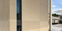 Die Symbiose von Alt und Neu zeigt sich am deutlichsten im Innenhof. Dort stehen heute zwei moderne Ergänzungsbauten, die einen barrierefreien Zugang zu allen Etagen des Gebäudes ermöglichen und die zentrale Versorgungsanlage beherbergen. Als Hommage an die historischen Fassaden wurden sie aus Sichtbetonfertigteilen errichtet, die im Fertigteilwerk Anton Schick gegossen wurden. Dafür im Einsatz: individuell gefertigte Matrizen mit einer 2 x 2 cm breiten Rippenstruktur aus unserer RECKLI UNIQUE Serie, die sich in Farbe und Struktur perfekt an das historische Luitpoldbad anpassen.