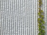 Die Fassaden des unteren, niedrigeren Teils wurden wiederum weiß verputzt und mit Stahlseilen versehen, an denen sich Kletterpflanzen emporranken sollen. Hier fallen einem sofort die drei Gewächshäuser auf, die sich auf der Terrasse erheben. Wobei es sich bei genauerem Hinsehen nur um zwei Gewächshäuser handelt – das dritte verbirgt die technischen Anlagen des Kulturterminals.