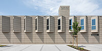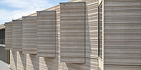 - Fassadengestaltung mit Strukturmatrizen mit einer warmbeigen und sandigen Optik mit harmonischer Verbindung zur Region