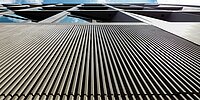 Hergestellt wurden die Betonfertigteile vom ungarischen Werk Ornamentika Kft. Die vertikal verlaufenden, u-förmigen Rippen mit 22 Millimetern Durchmesser schaffen ein präzises, ruhiges Oberflächenbild, das mit Licht und Schatten spielt und eine harmonische Verbindung von Innenraum und Fassade schafft.
