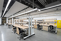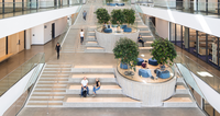 Revery entwarf das Gebäude um ein lichterfülltes Atrium herum, brachte Labore für Trocken- und Nass-Experimente unter, Lernräume, einen Hörsaal mit 400 Plätzen, Büroräume und Gemeinschaftsflächen für die Studierenden.
