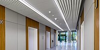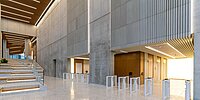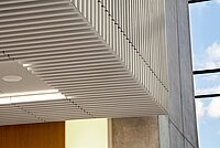 Schon heute ist der Skyliner ein charakteristisches Element der Stadtsilhouette Warschaus. Der schlanke Turm erhebt sich über einem breiten, verglasten, 16 Meter hohem Sockel, der den Eindruck entstehen lässt, der obere Teil des Gebäudes schwebe über dem Boden. Wichtigstes architektonisches Element ist allerdings eine Wand aus Strukturbeton – von den Architekten „The Blade“ genannt –, die wie eine Klammer den Eingangskubus, den 195 Meter hohen Turm sowie die zweigeschossige Skybar zusammenhält. Für diese Wand kam unsere Strukturmatrize 1/199 Bohemia aus der RECKLI SELECT Serie zum Einsatz. Die klare und glatte Rippenstruktur wurde sowohl an der Fassade als auch im Innenbereich auf insgesamt 720 m2 eingesetzt. Benötigt wurden dafür gerade einmal 5,7 m2 unserer handgefertigten Matrizen.