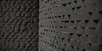 Um im Innenraum beste Akustik zu garantieren, plante Tomasz Konior und sein Architektenteam von KONIOR STUDIO eine Betonhaut mit einem individuell gestalteten Design aus der Serie RECKLI UNIQUE. Die Matrize mit versetzt angeordneten, herausragenden Elementen hat neben der optischen auch eine akustische Funktion. Die Experten von Alstal setzten die RECKLI-Matrizen im Ortbeton ein. Insgesamt benötigten Sie 35 Matrizen á 2,00 x 0,70 m für die Innenwände mit der höchsten Sichtbetonklasse. Die Betonelemente wurden im Nachgang mit Farbe angestrichen.