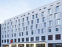 Das Büro Tschoban Voss plante den Hotelbau für die Moonday Projektgesellschaft in einer großen Baulücke an der Chausseestraße. Um die große Anzahl Zimmer unterzubringen, legten die Architekten den Bau mit mehreren Flügeln an, die in die Tiefe des Baugrundstücks ragen.