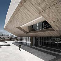 Eine spanische Bank veredelt die Fassade ihres Hauptquartiers mit einer Wellenstruktur, die den benachbarten [...] Eine spanische Bank veredelt die Fassade ihres Hauptquartiers mit einer Wellenstruktur, die den benachbarten