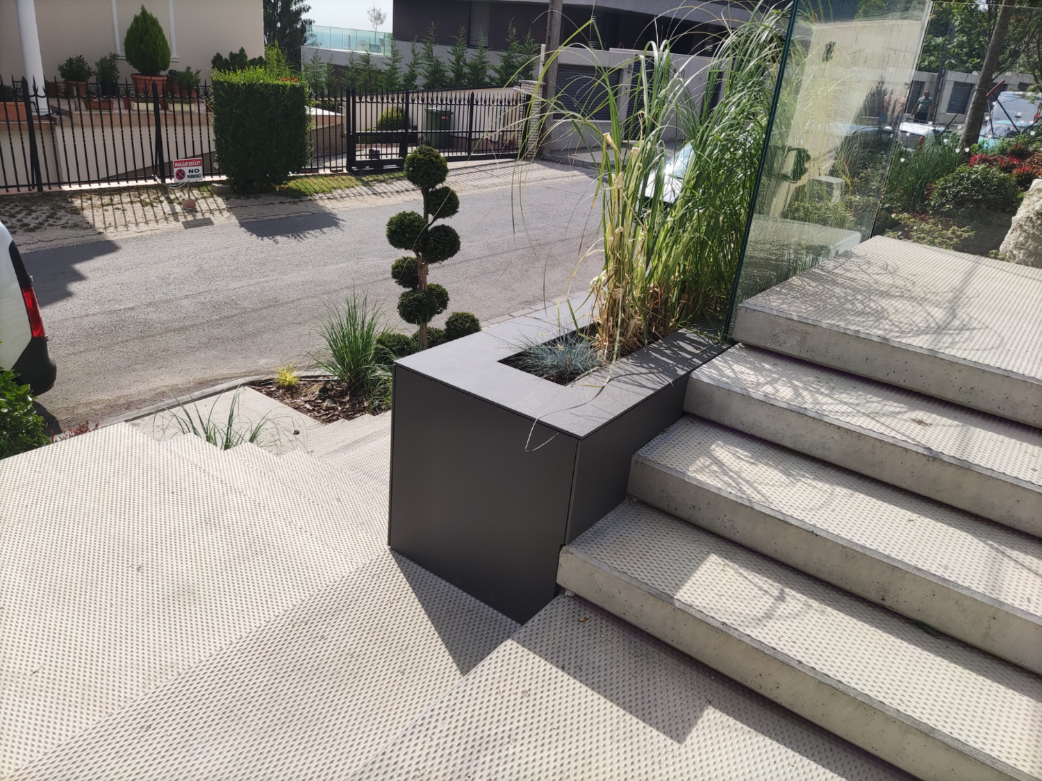 Die Treppen liegen auf den Zugangswegen zu den Villen und sind ein fester Bestandteil der täglichen Nutzung. Sie verbinden Höhenunterschiede innerhalb der Außenanlagen und müssen auch bei Regen, Feuchtigkeit oder wechselnden Witterungsbedingungen zuverlässig begehbar bleiben.