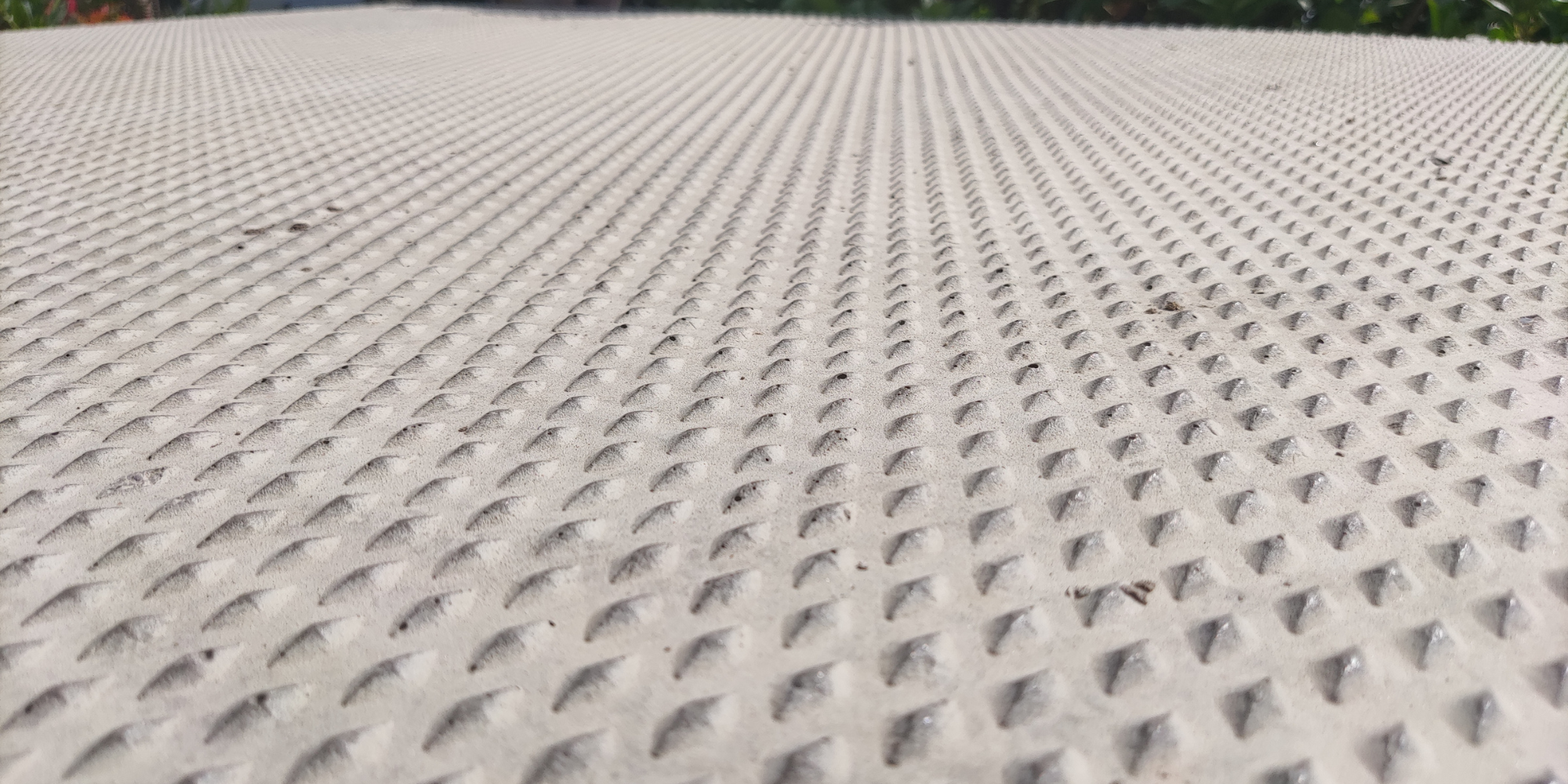Für diese Anforderungen wurde die Strukturmatrize 2119 Pikes eingesetzt. Die ausgeprägte Oberflächenstruktur erhöht die Rutschfestigkeit der Betontreppen deutlich und sorgt für Sicherheit im täglichen Gebrauch. Die ausgeführten Treppen erreichen die höchste Rutschsicherheitsklasse R13 und erfüllen damit besonders hohe Anforderungen an die Trittsicherheit im Außenbereich.