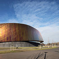 people who play sports here. Shining Performance of Steel and Concrete Colors and materials give the Sportcampus