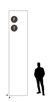 Structure aspect bois composée de planches verticales veinées, de largeur variables, montées sur différents plans de référence.