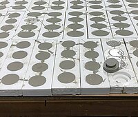 Au lieu d’une matrice élastique, RECKLI produisit des moules en caoutchouc pour les cavités. Ils virent le jour à partir de dessins que Ivan Griguol envoya à John Joveski, directeur général chez RECKLI Australie. Avec le polyuréthane RECKLI Pur 55, RECKLI coula environ 9 000 moules en caoutchouc. Les 6 designs différents des moules furent combinés ensuite selon un motif donné par les architectes et purent alors être utilisés pour la production des éléments en béton.