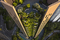 Heatherwick Studio ne firent pas le choix d’un immeuble en verre et conçurent une tour d’habitation fine avec de hautes colonnes en béton effilées et des balcons aux formes marquées : ils sont fixés comme des moules entre les colonnes en béton. Végétalisés avec des fougères et des plantes grimpantes, ils créent une atmosphère luxuriante pour les futurs habitants. « Nous voulions souligner le lien avec la nature même pour les logements à hauteur élevée - le climat à Singapour nous permet de créer pour chaque unité un jardin luxuriant et fertile », explique Charlie Kentish du Heatherwick Studio.