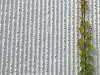 Les façades de la partie inférieure et plus basse, ont reçues une seconde couche de crépi blanc et ont été équipées de câbles d’acier qui permettent aux plantes grimpantes de s’accrocher. Les trois serres qui se dressent sur la terrasse attirent immédiatement l’attention. En fait, il ne s’agit que de deux serres, car la troisième dissimule les installations techniques du centre culturel.