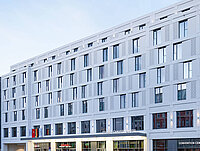 Le bureau Tschoban Voss a planifié la construction pour la société de projets Moonday dans un grand espace non construit dans la Chausseestraße. Afin d’abriter le grand nombre de chambres, les architectes ont aménagé le bâtiment avec plusieurs ailes qui se dressent dans la profondeur du terrain.