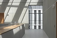La silhouette du bâtiment est marquée par des façades sobres aux couleurs retenues, créant une harmonie discrète et intemporelle. De vastes fenêtres laissent pénétrer une lumière naturelle abondante, infusant l’intérieur d’une atmosphère lumineuse, propice au travail et à la sérénité. L’intérieur reflète à la perfection ce concept moderne : des matériaux clairs, un design épuré, et des perspectives soigneusement pensées forment un cadre où calme et concentration s’entrelacent avec fluidité.