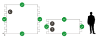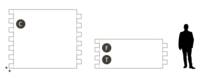 A horizontally running brickwork pattern in a sandstone look. The equally high, square stones are separated by 15 – 20-millimeter wide seams.