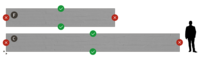 A horizontally running wood pattern with irregularly joining boards. The front- and back-lying elements enliven the façade.