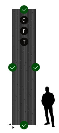 A geometric rib pattern with a linear pattern course. The ribs are set up like a triangle, are pointed at the top and are interrupted by triangular, slanted channels.