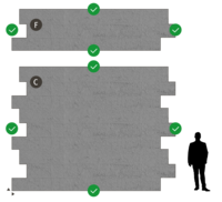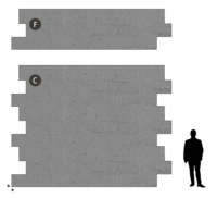 A masonry pattern with a worked and weathered limestone surface. The rectangular stones of the same height are staggered.