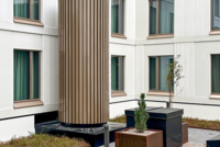 Inside, special attention was paid to acoustics and comfort: around 15,000 m² of acoustic ceilings in coordinated colors contribute to a calm atmosphere in public areas such as the lobby, restaurants, corridors, and meeting rooms. The Airport Center Hotel Helsinki combines direct terminal access with a wide range of services and modern architectural solutions.