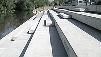 This terrace demonstrates how safety and a clean architectural look can go hand in hand. For the floor application we used a fine anti-slip surface that creates a subtle, almost smooth appearance from a distance, while providing reliable grip even in wet conditions. The delicate micro-texture adds a calm, contemporary character to the fair-faced concrete and supports the clear linear design of the stepped seating and walkway. The result is a robust, durable outdoor surface—ideal for terraces, steps, and paths close to water where secure footing is essential without compromising aesthetics.