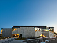 Picturesquely set on the river, Trent University’s new student center offers great views out over the green campus. RECKLI’s artico® neo photo process turns the concrete façade into a mirror reflecting the historic university buildings around it.