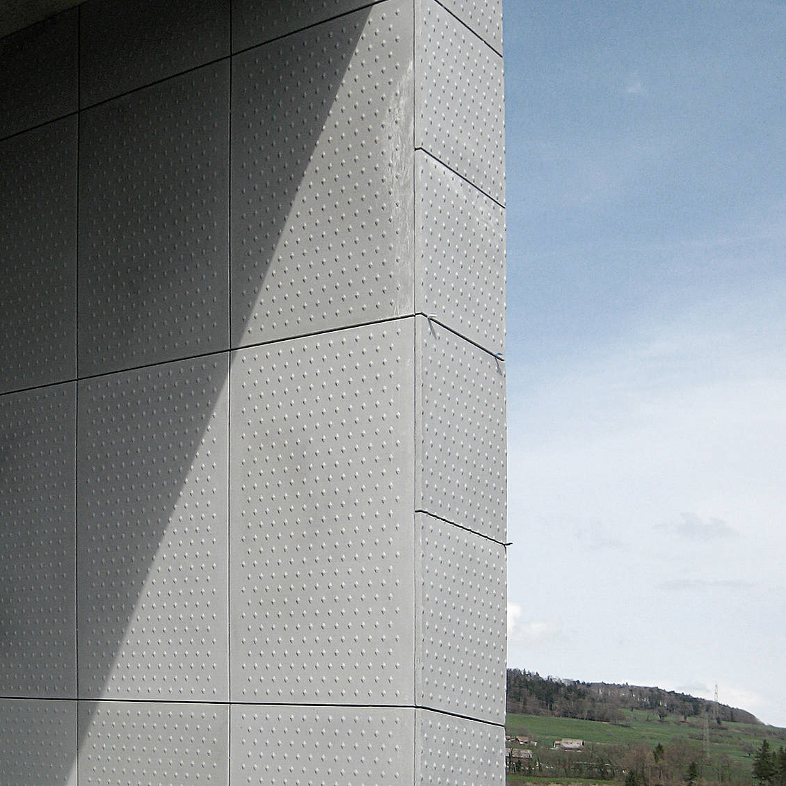 A linear pattern, whose look is inspired by sheet metal. Edgy rhombi make the concrete appear steely and clear.