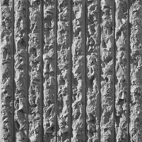 Vertically arranged elevations with coarsely chipped pattern, separated by 0.39" wide depressions.